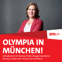 Was steckt hinter der Idee, München erneut als Austragungsort für Olympische Spiele ins Rennen zu schicken? Welche Chancen und Risiken stehen im Raum? Gemeinsam mit Verena Dietl wollen wir über die aktuellen Überlegungen sprechen, Fragen beantworten und Meinungen austauschen.